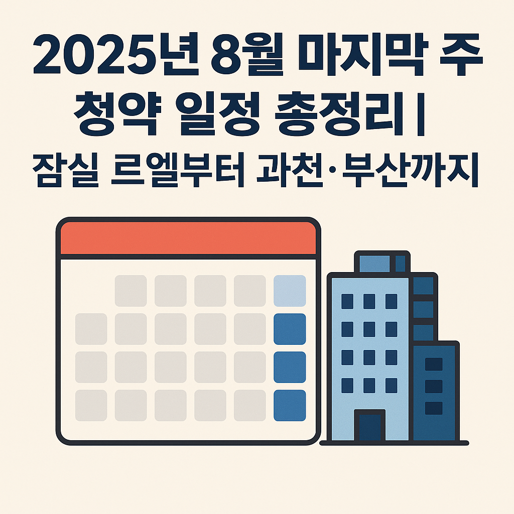 2025년 8월 마지막 주는 수도권과 지방에서 동시에 대규모 청약 일정이 몰려있는 핵심 시기입니다. 특히 서울 송파구의 '잠실 르엘' 청약이 예정되어 있어 전국 실수요자 및 투자자들의 관심이 집중되고 있습니다.